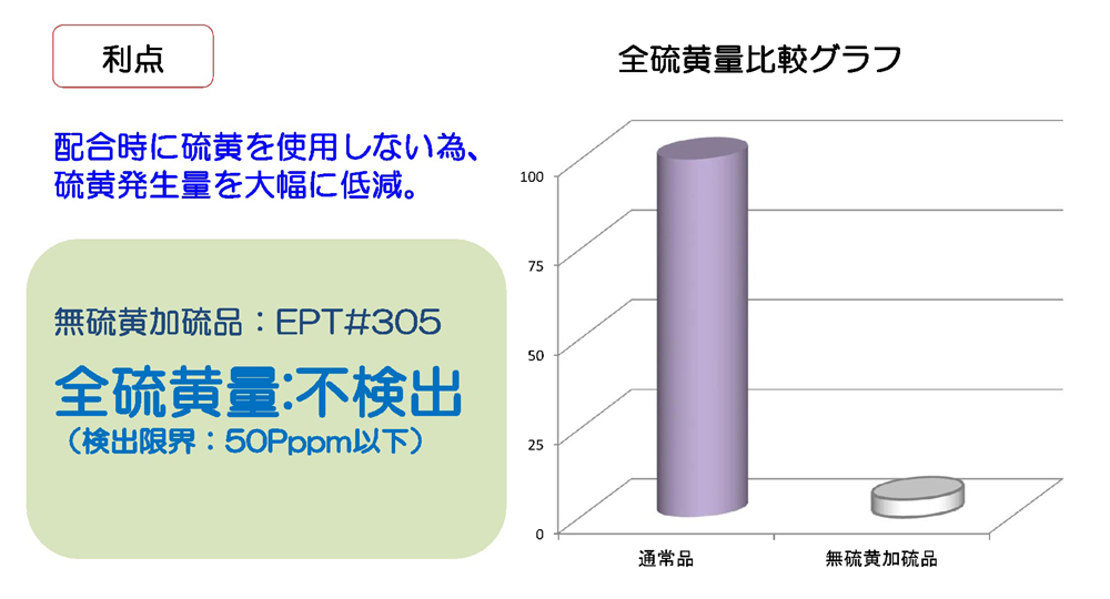 配合時に硫黄を使用しないために硫黄発生量を大幅に削減。