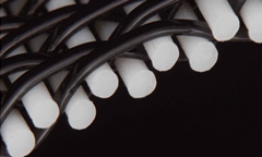 ナイロンモノフィラメントの断面の一部にカーボンブラック含有の導電性成分を複合させることによって、優れたモノフィラメントが得られます。静電気の発生を極力抑えた場合に有効です。