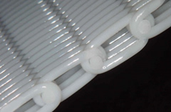 ポリエステルの繊維を編みこまれたベルトコンベアです。従来の樹脂製、ゴム製、ステンレス製のベルトコンベアと異なり、ピンシーム方式の継手ですからベルトを合わせて、ピンを差し込み捻る(ひねる)だけで設置が完了します。専門の取り付け業者を必要としない事が大きな特徴です。現場の作業者の方で簡単に取り付ける事ができ、作業時間も非常に短く短縮する事ができます。また、取り付け業者を必要としない事で、現場の都合の良い時間でラインが止められる事から生産性も向上致します。